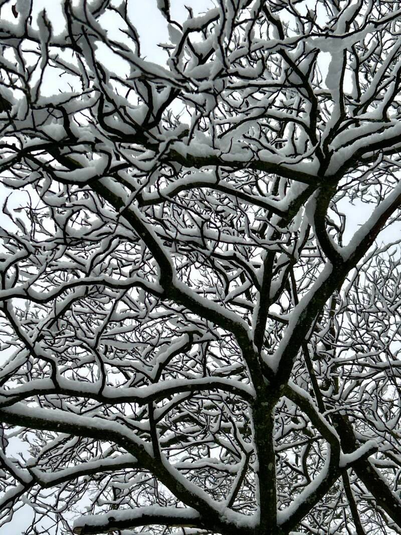 Wat een verrassing bij het openen van de gordijnen vanmorgen. Alweer zo mooi wit overal! Prachtig om te zien, dus ondanks gebroken pols een voorzichtige wandeling gemaakt in het bos. Met links foto's maken lukt vrij aardig en ik geniet weer volop van de winterse pracht overal.